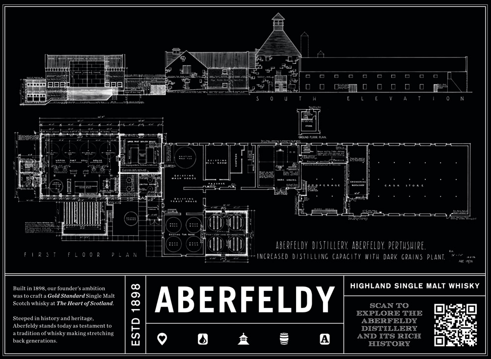 Beim Bau dieser edlen Brennerei wurden keinerlei Ausgaben gescheut. Ihr Design stammt aus der Feder des legendären Brennerei Architekten Charles Doig, der die „neuesten Fortschritte“ meisterhaft einbezog. Die Einrichtung wurde bis ins kleinste Detail sorgsam geplant, um einen Highland-Malt höchster Güteklasse zu erschaffen. Mit seinem weichen und opulenten Charakter trug ABERFELDY® maßgeblich dazu bei, den Stil der Highlands bis tief ins 20. Jahrhundert zu führen.