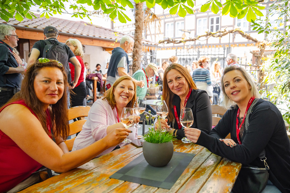 „Es freut uns sehr, dass die Umstrukturierung mit den drei Ausgabestellen von unseren Gästen so gut angenommen wurde“, resümierte Groß. Von dort schwärmten die Weinfans entweder zu Fuß zu den nächstgelegenen Weingütern aus oder nutzten einen der Shuttlebusse, um Betriebe in anderen Weinorten anzufahren. Laut Groß sei es zwar leider aufgrund von Baustellen mit Ampelverkehr zu ein paar Verzögerungen beim Fahrplan der Shuttlebusse gekommen, das habe der super Stimmung aber keinen Abbruch getan.