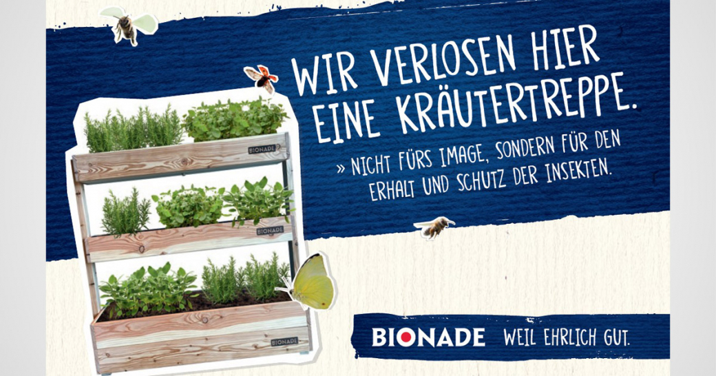 BIONADE liebt Kräuter. Deshalb stecken viele von ihnen in der herrlich erfrischenden Sorte BIONADE Kräuter. Aber auch für den Artenschutz ist ein Kraut gewachsen: BIONADE verlost jetzt bei einer Handelsaktion in allen national beteiligten Märkten jeweils eine Kräutertreppe.