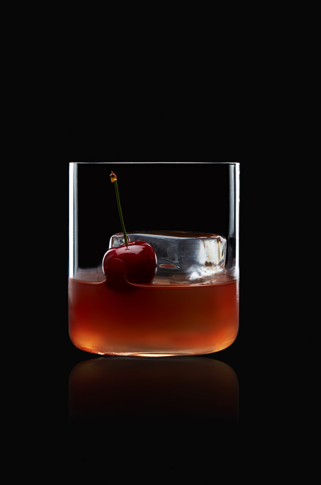 Alle Zutaten in einem Glas verrühren und in einem Glas der Wahl über Eis gießen. Mit einer frischen Kirsche garnieren