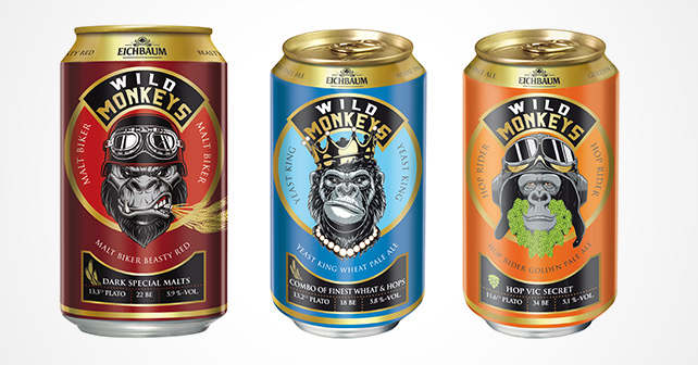 Drei impactstarke Gestaltungen mit ihren genauso intensiven Sorten: das ist die Wild Monkeys Craft Beer Range von Eichbaum. Ab Januar 2020 sind der Hop Rider (Golden Pale Ale), der Yeast King (Wheat Pale Ale) und der Malt Biker (Beasty Red) national erhältlich.