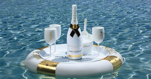 Überall dort, wo Champagner-Liebhaber diesen Sommer verbringen, kann Moët Ice Impérial dabei sein – insbesondere aber am, auf und im Wasser. Moët & Chandon präsentiert die Moët Ice Impérial Floating Bar, das ist sommerliches Vergnügen pur! Diese limitierte Edition besteht aus einem schwimmenden Tablett, einer weißen Leinen-Strandtasche, sechs passenden großen Champagnergläsern und natürlich einer Magnumflasche Moët Ice Impérial – das ist glamouröser Badespaß mit Freunden.