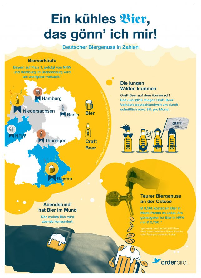 orderbird (https://www.orderbird.com), der führende Anbieter für iPad-Kassensysteme in der Gastronomie, hat über einen Zeitraum von einem Jahr die Biergewohnheiten der Deutschen genauer untersucht, mit interessanten Ergebnissen.