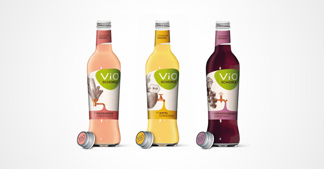 Die neuen ViO Schorlen sind ausschließlich in der 0,3-Liter-Glasflasche mit Schraubverschluss erhältlich. Auch im Design präsentieren sie sich so als trendbewusste Alternative zu herkömmlichen Saftschorlen.