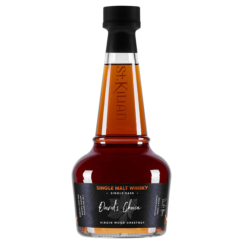 Die Einzelfassabfüllung „David’s Choice“ wurde persönlich von St. Kilians Spiritus Rector, David F. Hynes, ausgewählt. Dieser nicht rauchige Tropfen reifte fünf Jahre lang in einem frischen 225 Liter Fass aus edlem Kastanienholz. Das Ergebnis dieser außergewöhnlichen Lagerung ist ein üppiger Single Malt Whisky, der nicht nur durch seine vollmundige Fruchtsüße, trockenen Tannine und warmen Holznoten besticht, sondern auch durch eine prachtvolle Mahagonifarbe überzeugt.