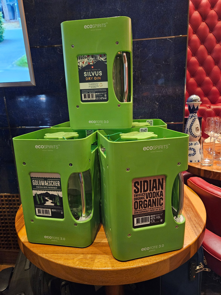DIWISA AG, a leading Swiss producer of spirits, is now offering three of its products in environmentally considerate ecoTOTE containers. This decision underscores the company’s commitment to sustainability and environmental responsibility. Innovative reusable containers from ecoSPIRITS are used for the Swiss brands Silvus Dry Gin, Goldwaescher Rye Whisky and Sidian Organic Vodka.