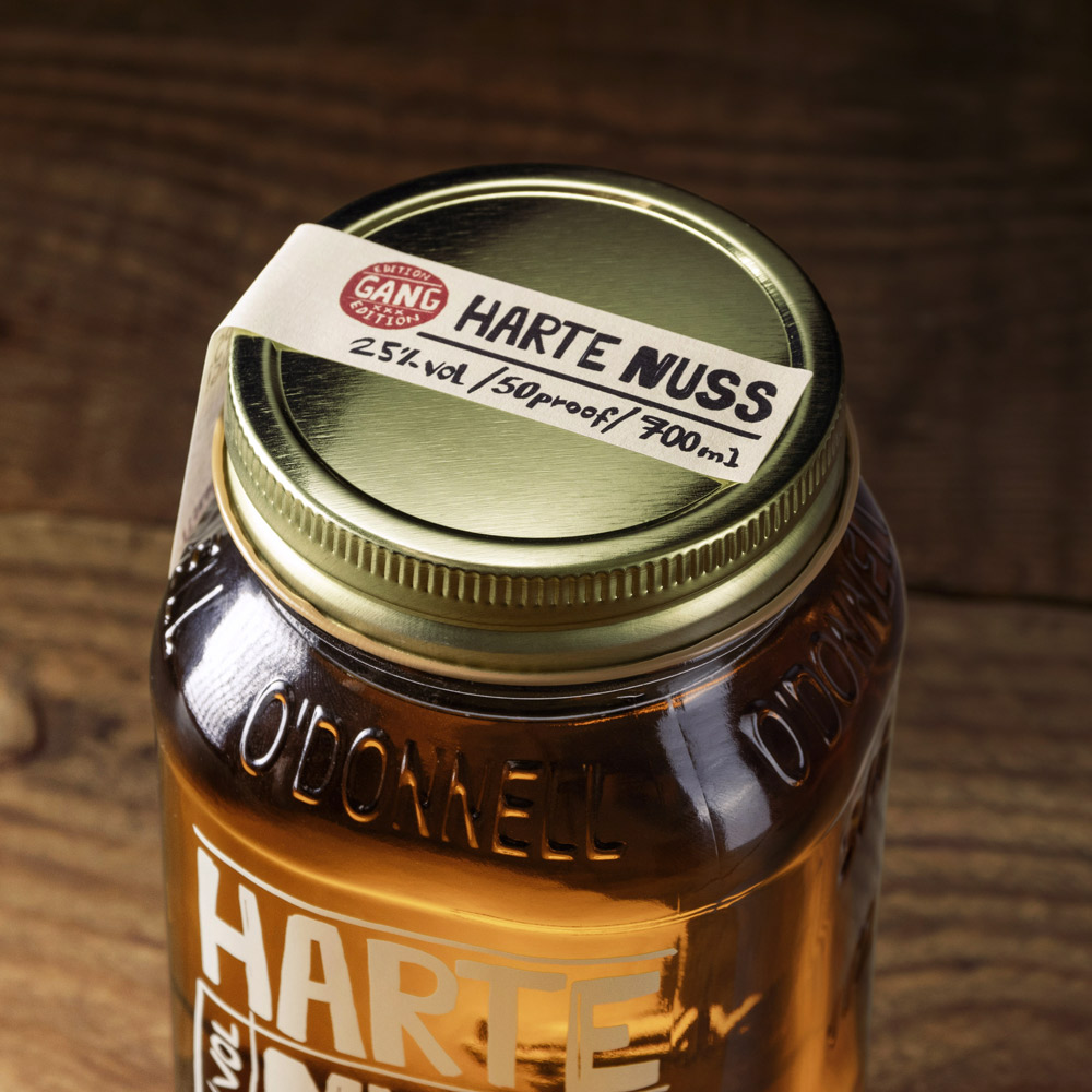 O’Donnell Moonshine präsentiert die „Harte Nuss“ im neuen Design. Er ist exklusiv für Gang-Mitglieder erhältlich.