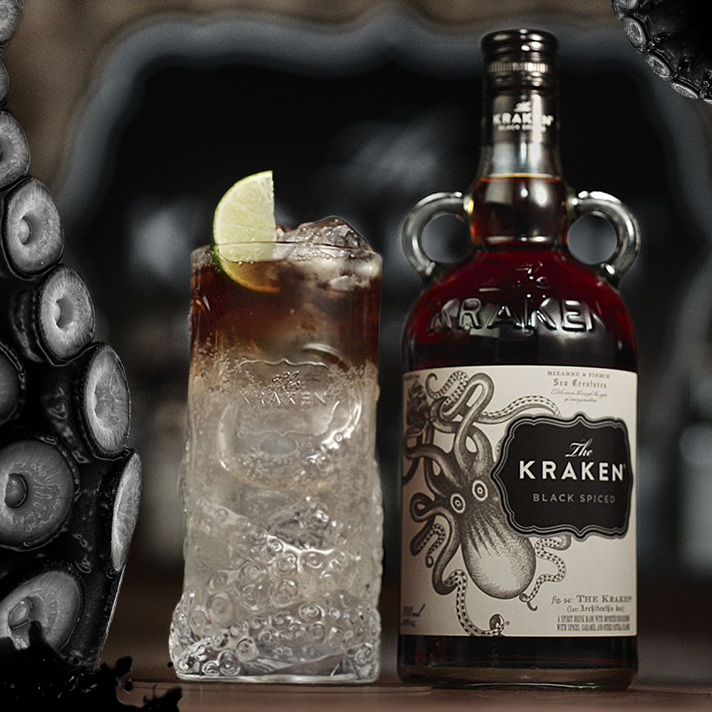 Eis und Ginger Beer ins Glas geben, The Kraken Black Spiced langsam über einen Löffel auf das Ginger Beer gießen, so dass er auf der Oberfläche floatet und den Drink mit einem Limetten-Wedge garnieren.