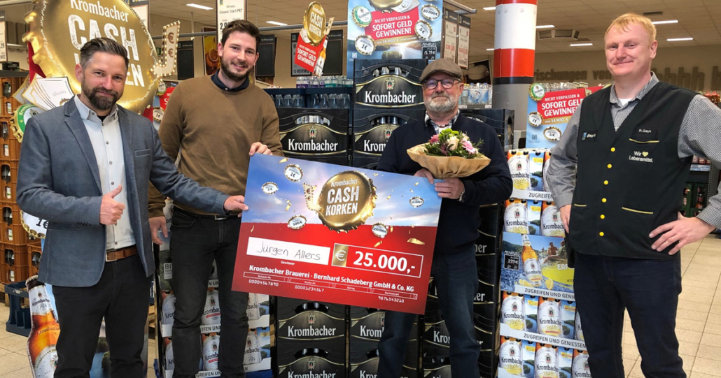 Wie schnell sich der Genuss einer Flasche Krombacher in wahren Geldsegen verwandeln kann, das erlebte kürzlich Jürgen Allers aus Schiffdorf. Bei der Krombacher Cash-Korken-Aktion fand er nicht nur die ersten Gewinn-Kronkorken – er räumte zusätzlich bei der wöchentlichen Sonderauslosung 25.000 Euro ab.