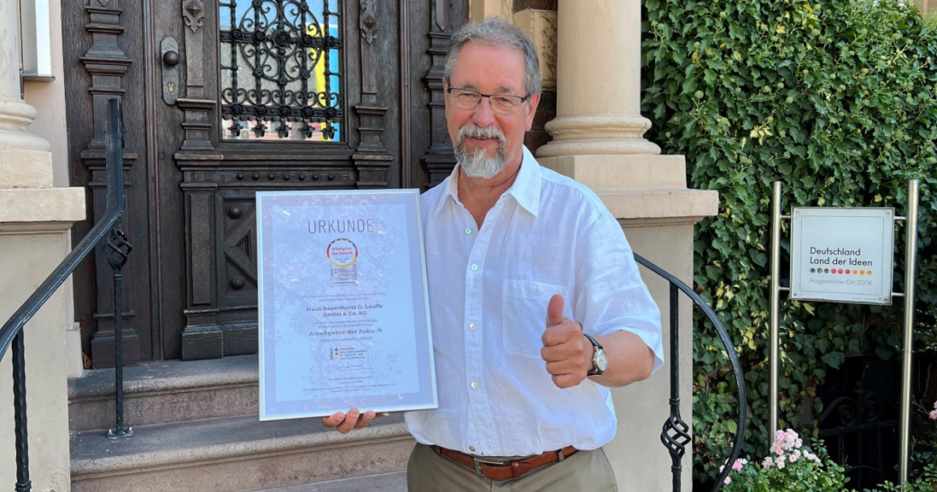 BU Titelbild: Haus Rabenhorst Geschäftsführer Klaus-Jürgen Philipp mit der Urkunde “Arbeitgeber der Zukunft”
