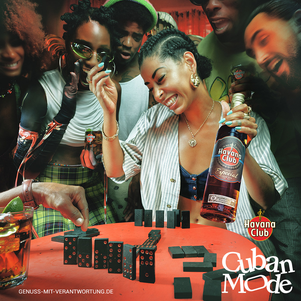 Mit „Cuban Mode“ erlebt man die Essenz Kubas mit einer unerwarteten Reise durch ein Haus mitten in Havanna mit lebhaften Partyszenen und der kubanischen Lebensfreude. Cuban Mode ist daher auch ein visuelles Erlebnis: Regie führte unter anderem der renommierte Regisseur Aisultan Seitov, der für seine Arbeit mit Rap-Künstlern wie Offset, 21 Savage und Tyler the Creator bekannt ist. Jede Szene, von Domino-Spielen bis hin zum Tanzen vor der glitzernden Skyline Havannas, spiegelt einen anderen Aspekt von Havana Club wider. Das Voiceover passt perfekt dazu: „There’s a recipe to the Cuban way of life […] Make the most of what you’ve got […] An energy born in Cuba but felt by all.“ Es ist ein Aufruf an alle, das Beste rauszuholen und das Leben zu feiern. Denn genau das ist der Spirit, der durch alle Generationen fließt.