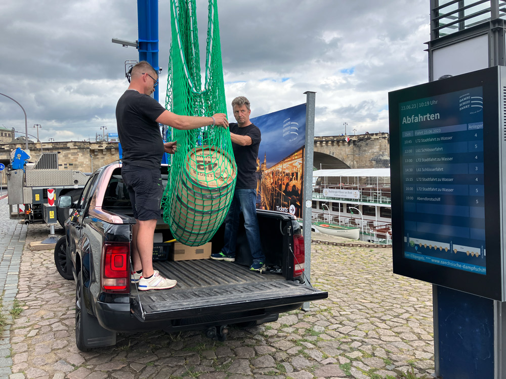 Für alle Fahrgäste des Dampfers wird an den beiden Fässern noch ein Messingschild angebracht mit den wichtigen Infos. „Und der Clou dabei ist, dass wir einen QR-Code anbringen durften, über den man direkt auf unseren Online-Shop weitergeleitet wird und eine oder mehrere Flaschen vorbestellen kann. Und dies so lange, bis die Sonderedition ausverkauft sein wird. Natürlich kann man auch direkt im Shop bestellen, aber die authentischste Form der Bestellung ist natürlich die am Fass selbst“, so Michalski weiter. Und wie dann weiter? „Das müssen wir dann sehen, schließlich ist die jetzige Aktion für den Dresdner Whisky erstmal eine ‚Probefahrt‘. Wenn alles so gut läuft, wie wir uns das gerade vorstellen, dann könnten durchaus auf jedem Dampfer Whisky-Fässer stehen“, ergänzt Michalski.