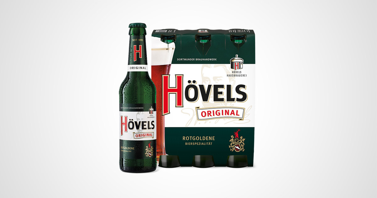 Als echte westfälische Spezialität unter den Bieren vereint Hövels Original mit seinem neuen Markenauftritt nicht nur Tradition und Moderne miteinander, sondern folgt auch dem Trend zu kleinen Verpackungseinheiten. Das rote Gold aus Dortmund ist jetzt auch in der beliebten Drittelliterflasche und im handlichen Sixpack verpackt erhältlich.
