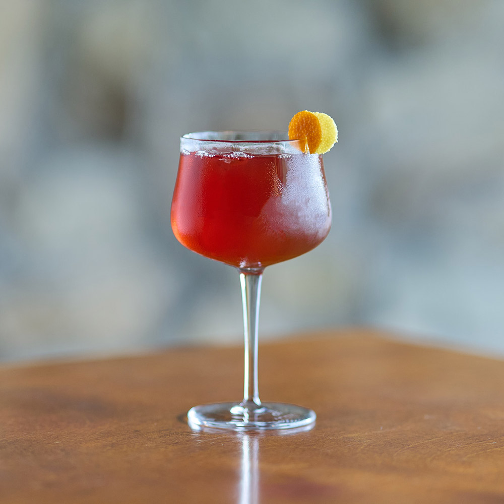 Zutaten in einem Rührglas mit reichlich Eiswürfeln kaltrühren und in eine vorgekühlte Cocktailschale abseihen. Mit zwei kreisrund geschnittenen Zesten von Zitrone und Orange garnieren.