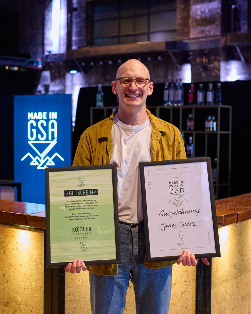 Für Jakob Habel gibt es anlässlich des Sieges beim größten markenunabhängigen Cocktailwettbewerb in Mitteleuropa einen ganz besonderen Preis: Im Sommer wird er für fünf Tage zum Weingut Koegler im Rheingau reisen, einem der bekanntesten Verjus-Produzenten. Er darf dann vor Ort nicht nur die Gastfreundschaft des Weinguts genießen, sondern aktiv und unmittelbar an der Ernte und der Verjus-Herstellung teilnehmen – inklusive der Möglichkeit, vor Ort einen eigenen Rosé-Verjus zu kreieren.