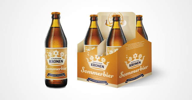 So ungewöhnlich der Geschmack, so auffällig ist auch die Optik: Sonnenblumen krönen die orange-leuchtenden Etiketten der bauchigen Euroflaschen. Und weil sich der Dortmunder Sommer am besten gemeinsam genießen lässt, gibt es Dortmunder Kronen Sommerbier im handlichen Viererträger. „Den nimmt man gerne mit“, ist Wiebke Rath überzeugt. „0,5 Liter hitzefrei“ gibt es allerdings nur, solange der Vorrat reicht.