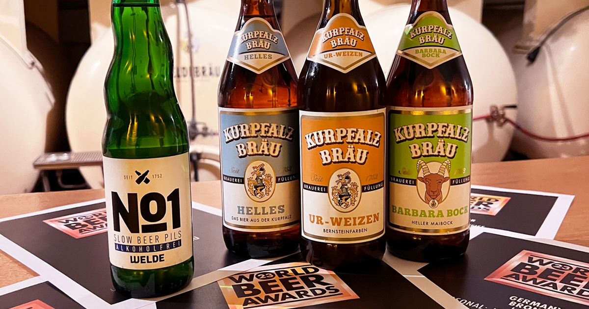 Das Kurpfalzbräu „Ur-Weizen“ erhielt Gold und wurde damit Landessieger Deutschland in der Bierkategorie „Weizenbier Bavarian Style (bernsteinfarben)“. Der Kurpfalzbräu „Barbara Bock“ und das „Helles“ dürfen sich ebenso mit Bronzemedaillen schmücken wie das „Welde No1 Slow Beer Pils ALKOHOLFREI“. Das glänzende Metall für das alkoholfreie Welde-Pils ist eine besondere Auszeichnung im Marktsegment „Alkoholfrei“, das bundes- und weltweit immer wichtiger und vielfältiger wird.