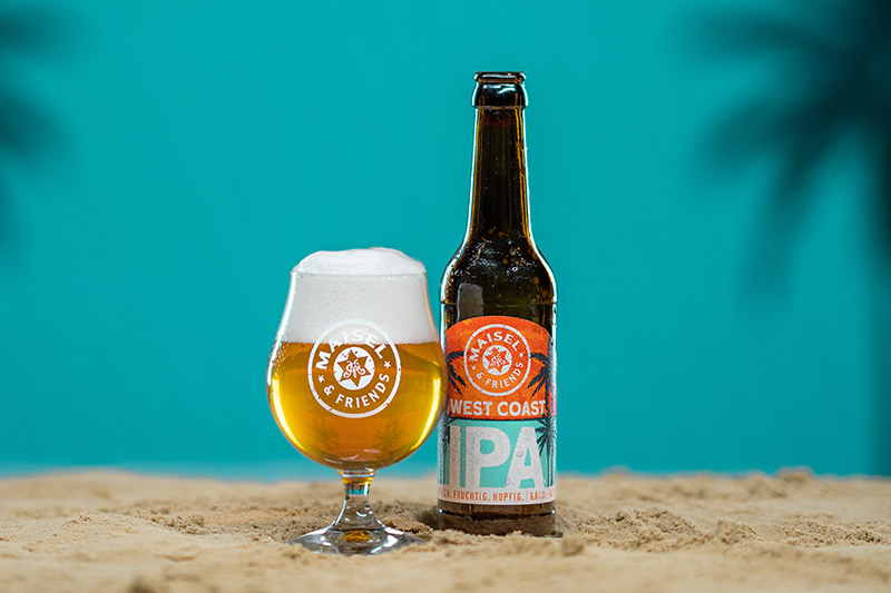 Die kreativen Brauer aus Bayreuth haben bereits seit 2016 ein IPA im Portfolio. Hierbei handelt es sich um einen klassischen Vertreter des Bierstils India Pale Ale mit knackiger Bittere und erfrischenden Zitrusnoten. Beim neuen Maisel & Friends West Coast IPA mit 6,6 % vol. Alkoholgehalt dominieren die tropischen und fruchtigen Aromen, die von einer stiltypischen Bitternote abgerundet werden.