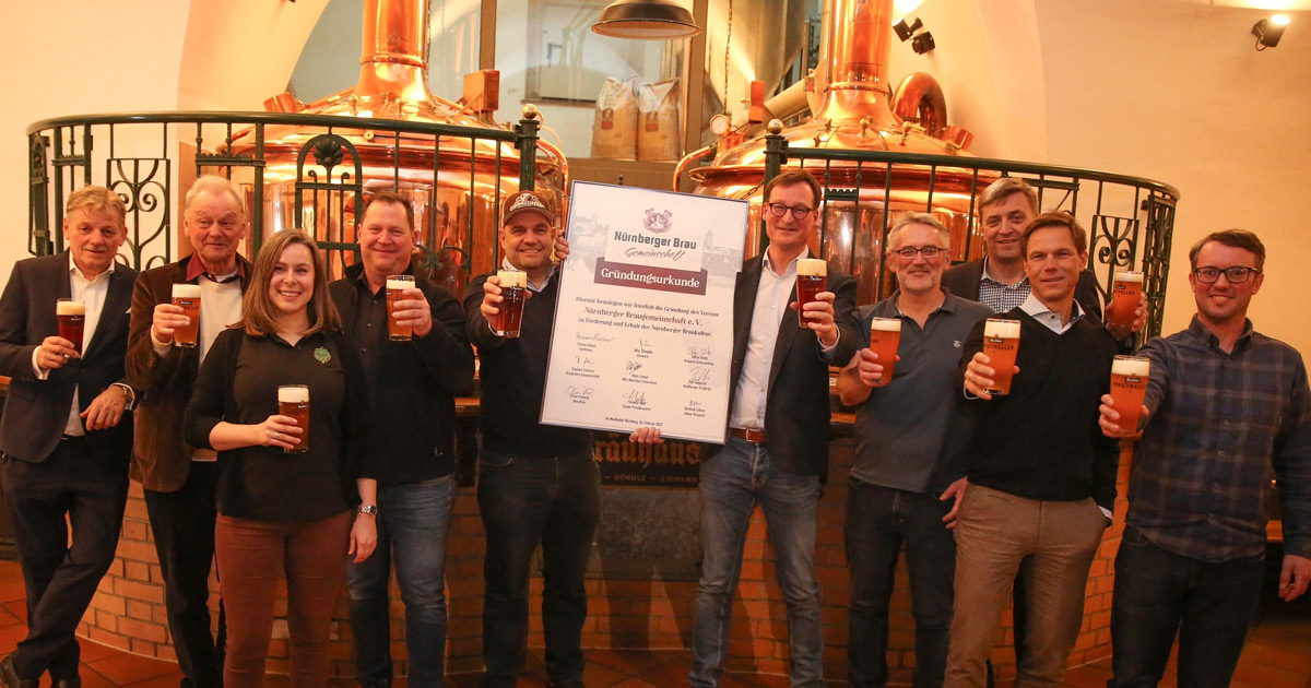 Was vor einem Jahr als spontane Initiative seinen Anfang nahm, bekommt nun einen langfristigen Rahmen: Acht Nürnberger Brauer und ein Hopfenhändler schließen sich zum Verein Nürnberger Brau Gemeinschaft zusammen. Ihr erklärtes Ziel: Den vertieften Dialog und Zusammenhalt der Nürnberger Biertraditionen zu pflegen, wie es in der Präambel der Vereinssatzung heißt. Sichtbarstes Zeichen dieses Vorhabens ist ein gemeinschaftlich gebrautes Bier in limitierter Auflage, in diesem Jahr passenderweise das Gründungs-Seidla.