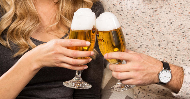 Anstoßen mit zwei Gläsern Veltins Pilsener