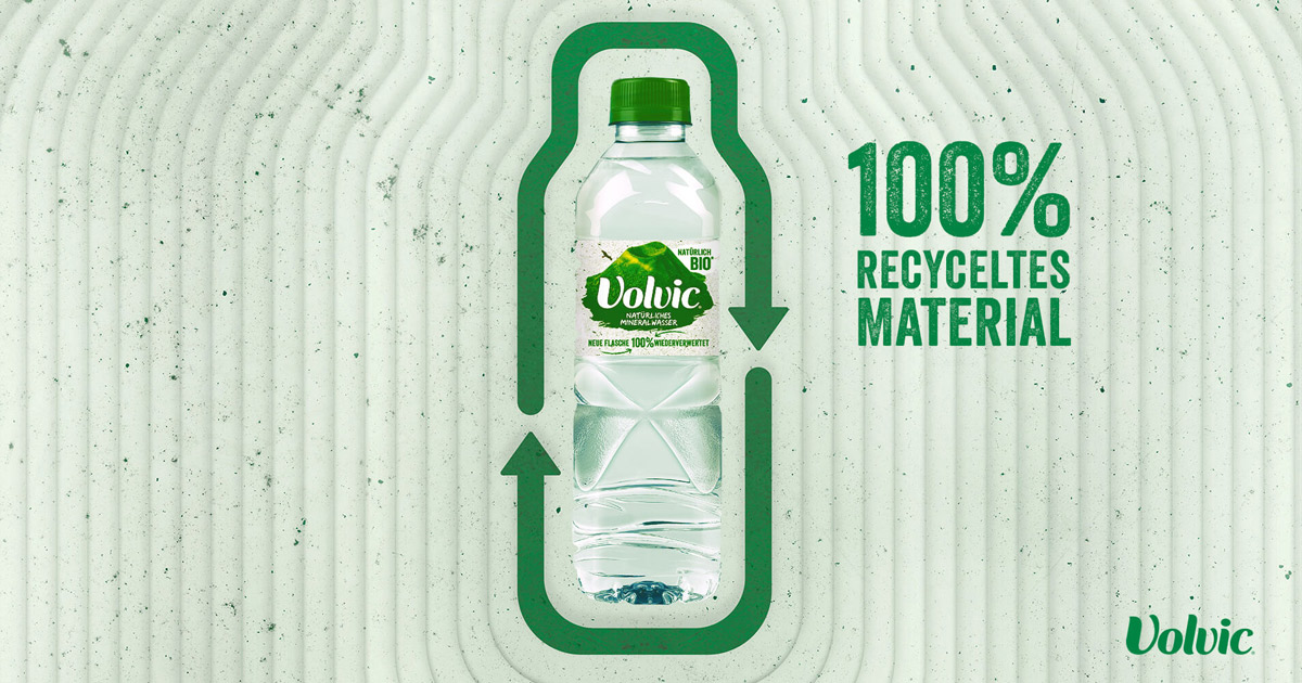 (1) Ausgenommen Etikett und Verschluss. Daran arbeitet Volvic mit Hochdruck.