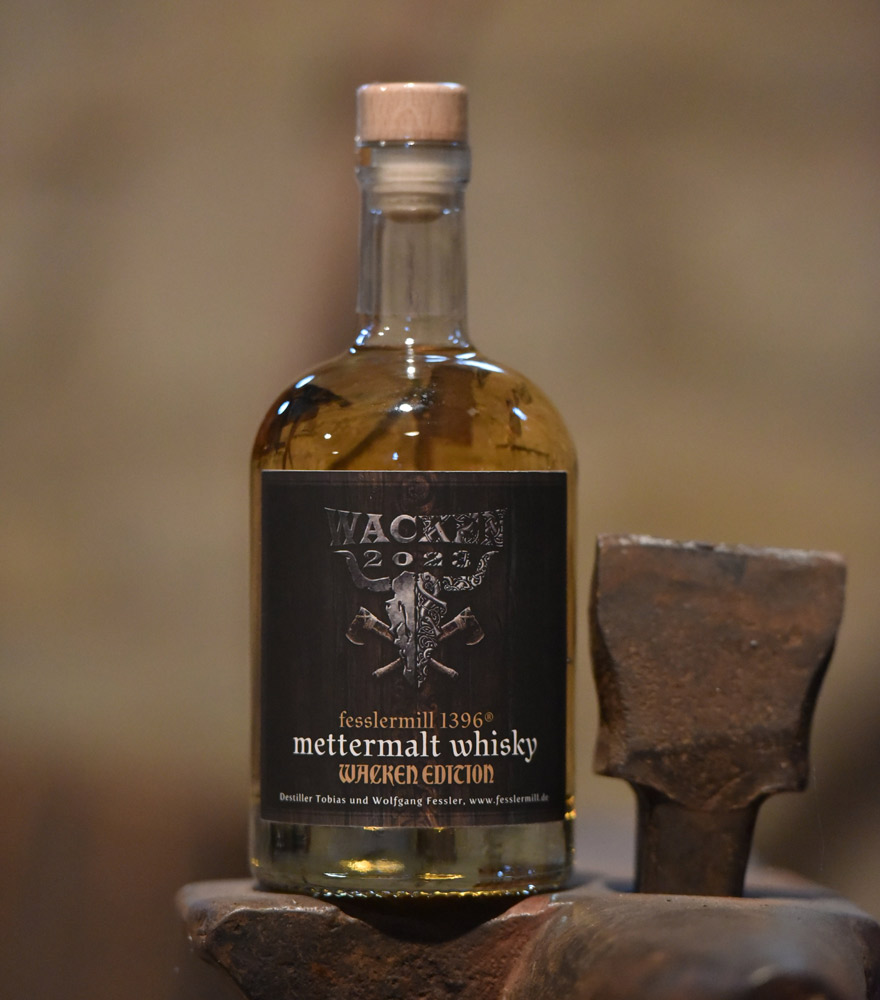 Tobias Fessler: Ich war das erste Mal selbst im Jahr 2007 auf dem Wacken Open Air, seit damals inzwischen über zehnmal vor Ort mit dabei und mein Vater war auch bereits öfters mit dabei. Noch lange bevor wir die Idee eines eigenen Wacken Whiskys hatten, kam der Kontakt mit Thomas Jensen auf dem Wacken Open Air zustande. Im Jahr 2021 hatte die Fessler Mühle ihr 625-jähriges Jubiläum, daraus gab sich die Idee, zum Jubiläum mehrere Sondereditionen auf den Weg zubringen – eine davon war die Wacken Whisky Edition 2021. Thomas Jensen war von der Idee begeistert, gemeinsam den allerersten Wacken Whisky zu schaffen und so brachten wir im Jahr 2021 die erste offizielle Wacken Whisky Edition gemeinsam auf den Markt.