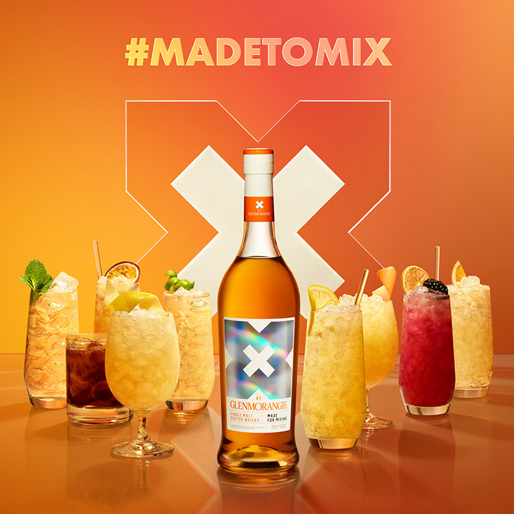 Handwerklich hergestellt, ist X by Glenmorangie eine Komposition mit gereiftem Whisky aus ehemaligen Bourbonfässern und nachgereiftem Whisky aus neuen, getoasteten Fässern. Mit Limonaden und Eis ergänzt, entstehen daraus schnell köstliche Drinks. Glenmorangie hat eXtra Rezepte entworfen, die nur wenige Zutaten benötigen. Klassiker wie Glenmorangie X Tonic, Glenmorangie X Cola oder Drinks im Swizzle-Stil wie Glenmorangie X Brunch sind auf Glenmorangie.com abrufbar.