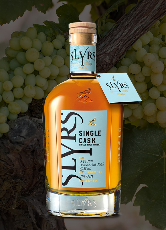 Der SLYRS Single Malt Whisky Single Cask Moscatel Cask Finish wurde 2018 auf traditionelle Art destilliert und lagerte zunächst drei Jahre in einem Fass aus Amerikanischer Weißeiche, anschließend weitere zwei Jahre in einem Fass, in dem zuvor jahrzehntelang traditioneller Moscatel Sherry gelagert wurde.