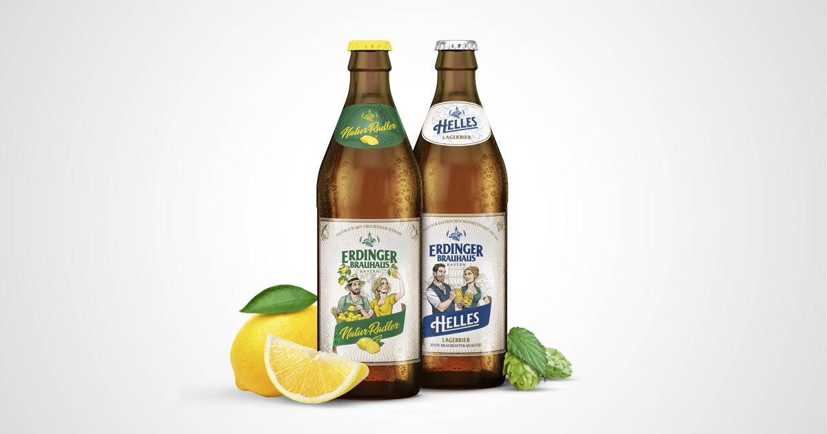 Hellbier und Naturradler sind die Wachstumssegmente im Biermarkt. ERDINGER macht sich nun daran, diese Erfolgsgeschichte zu bereichern. Ab sofort setzt die Privatbrauerei bundesweit sowohl im Handel als auch in der Gastronomie neue Impulse – mit zwei herausragenden Spezialitäten, einem erfrischenden Markenauftritt und einer frechen Kommunikation mit Augenzwinkern. Statt der für Hellbier branchenüblichen blauen Kästen sorgt der grüne ERDINGER Brauhaus Kasten für die optische Differenzierung im Handel. Das auffallende Grün ist generell der Farbcode der Marke und auf allen Werbemitteln zu finden. Von den Flaschenetiketten grüßen zudem Kathi und Basti, die frische-verliebten Influencer von ERDINGER Brauhaus – beim Hellen gesellig in Tracht, beim NaturRadler natürlich und echt aus dem Zitronengarten.